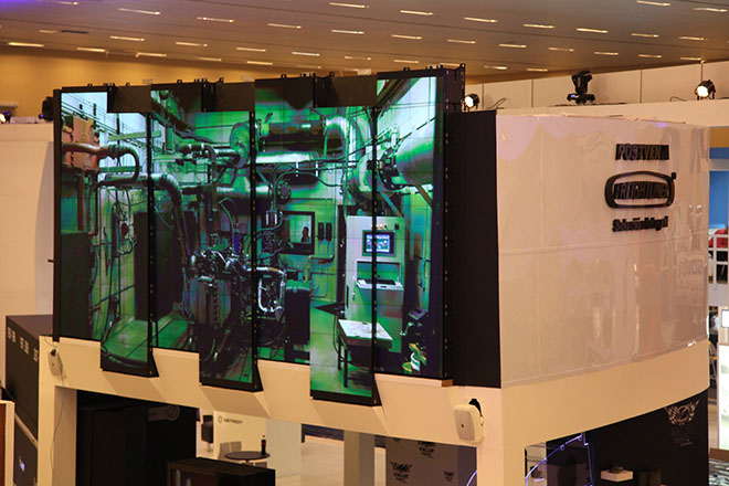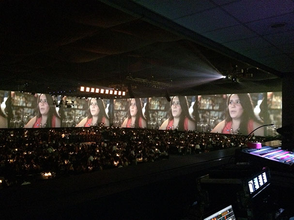 Pantalla de 15 metros reproduce vídeos, imágenes, y circuito cerrado con la tecnología del Spyder y Proyectores Christie.